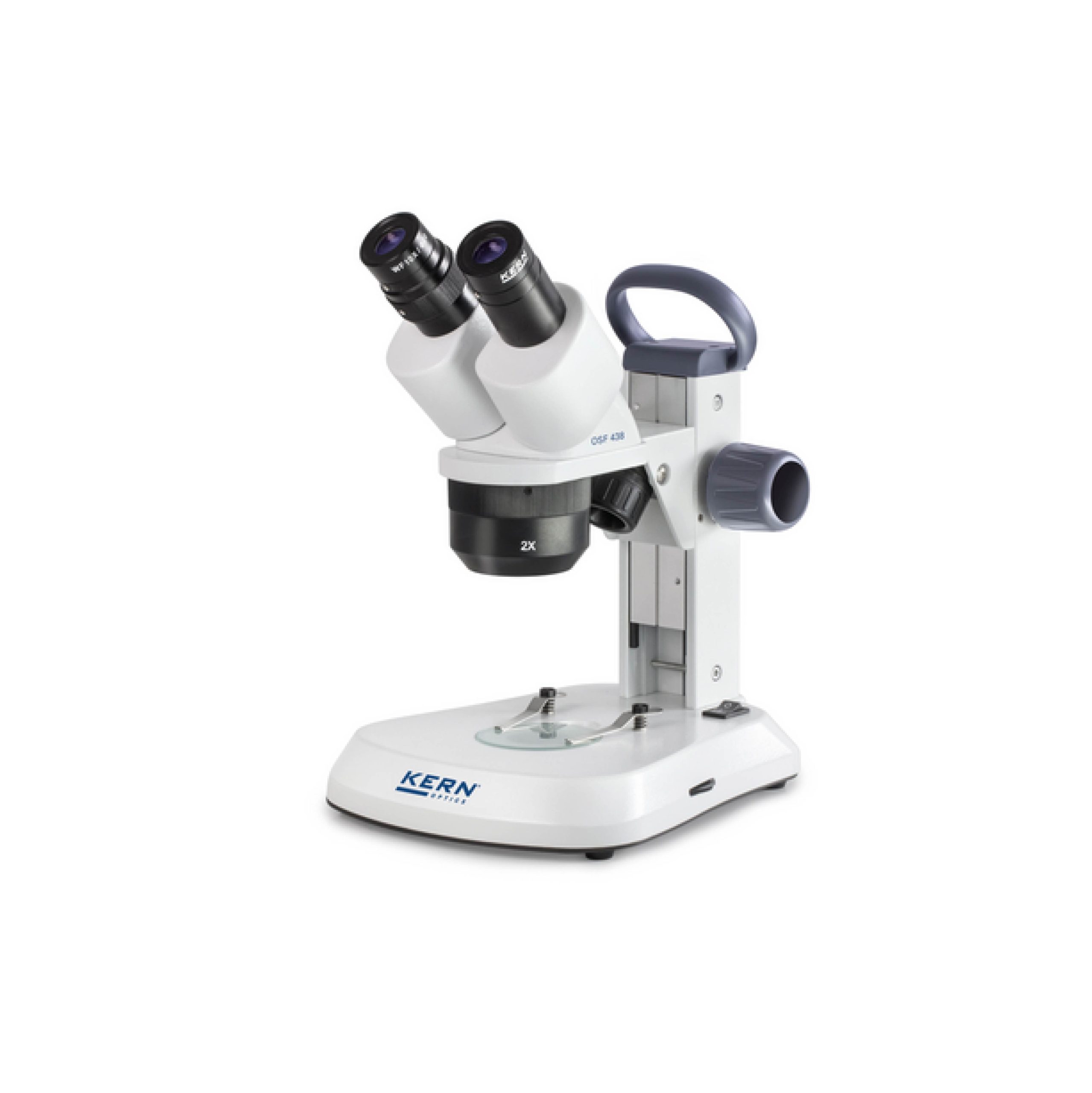 Microscópio estéreo com design robusto e ergonómico, ideal para oficinas, escolas e formações.